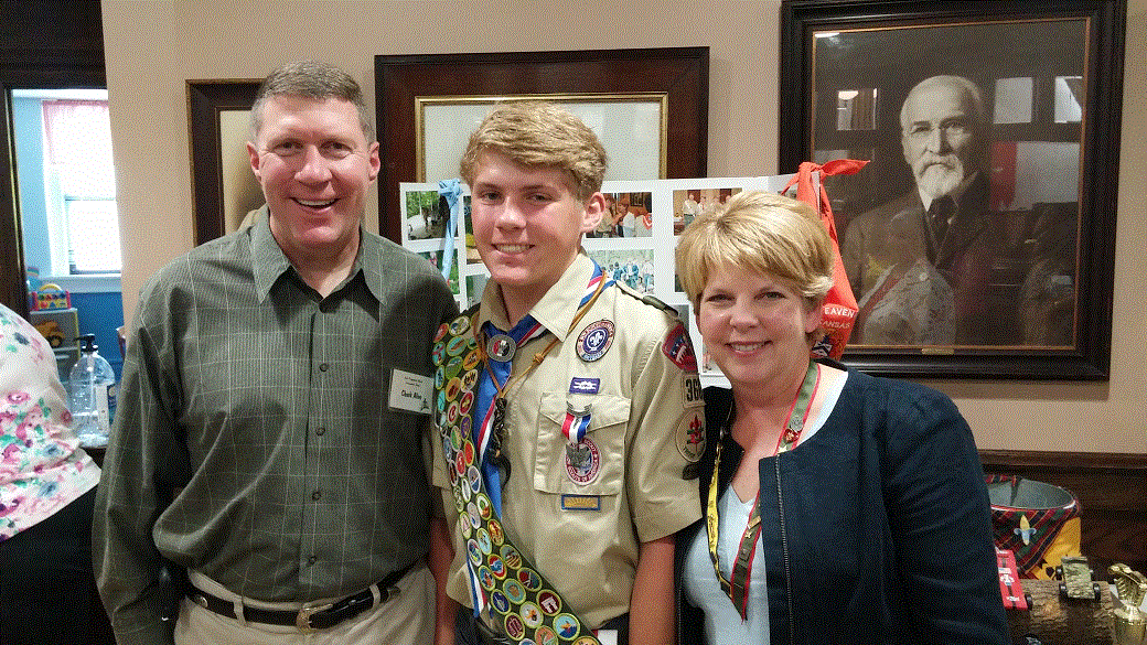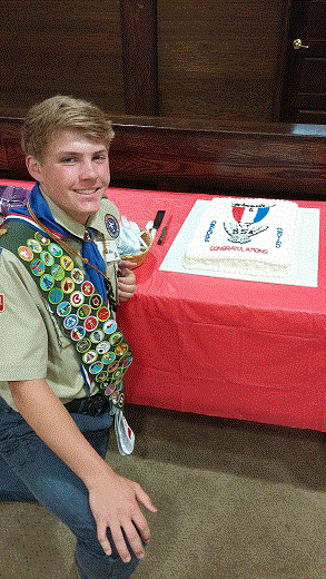 Drake like his brother Chase achieved the highest award this year in scouting. Drake organized, conducted and supervised completion of raised planting boxes for senior citizens in a local retirement home. The pictures below were taken after recoginition by the First Presbyterian Pastor during the service.